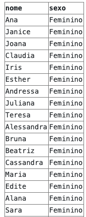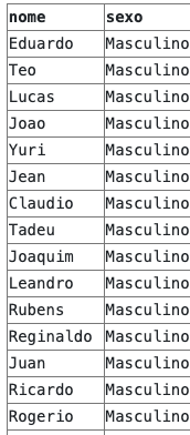 SELECT nome, sexo