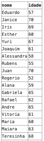 Neste exemplo, estamos buscando apenas pessoas cuja idade seja maior que 50 anos: