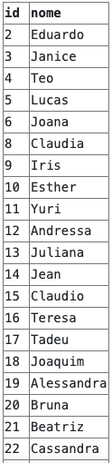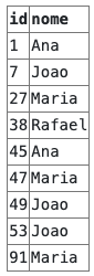 No código acima estamos filtrando somente as pessoas cujo nome sejam Ana, Joao, Maria e Rafael: