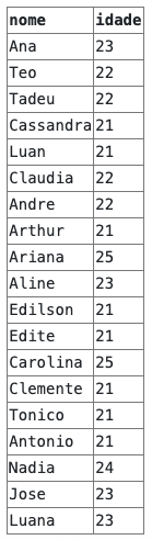 Na query acima estamos buscando todas as pessoas cujo valor da coluna "idade" esteja entre 20 e 25: