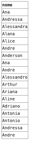 E no caso acima filtramos todos os nomes que terminem com a letra "A":
