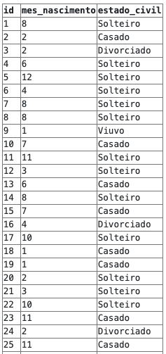 Quando não houver correspondência na segunda tabela, a coluna estado_civil ficará em branco na determinada linha.