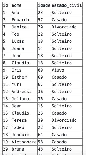 SELECT p.id, nome, idade, estado_civil