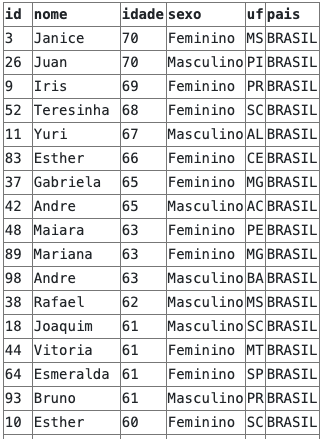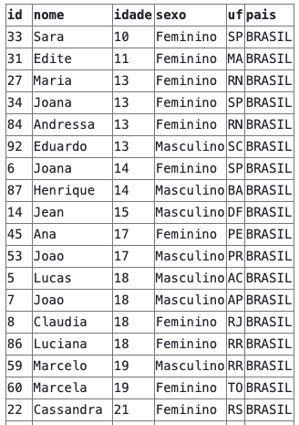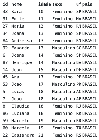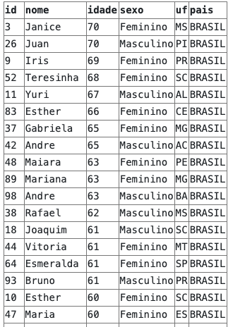 Na query acima estamos ordenando os resultados por idade de forma descendente e por id de forma ascendente: