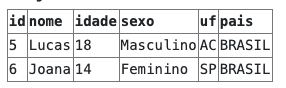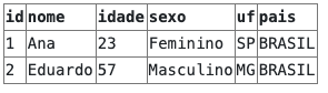 Para exemplificar vamos considerar a tabela "pessoas" da nossa base de dados: