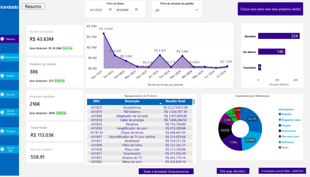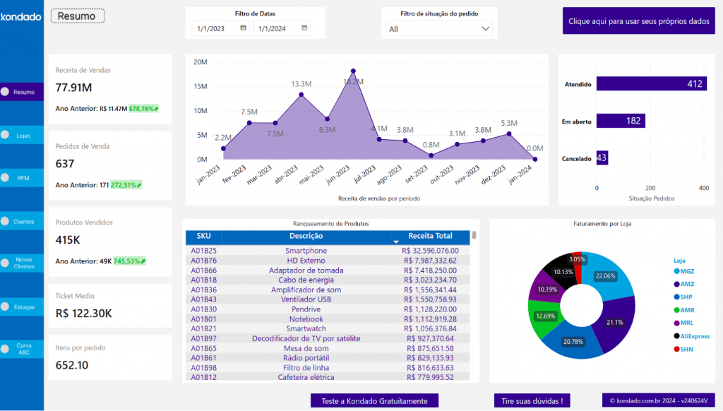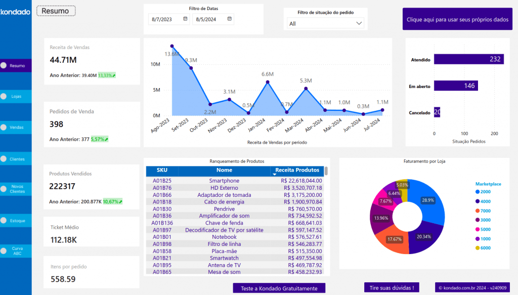Confira todos os dashboards prontos e gratuitos disponíveis na Kondado para Power BI e Looker Studio.