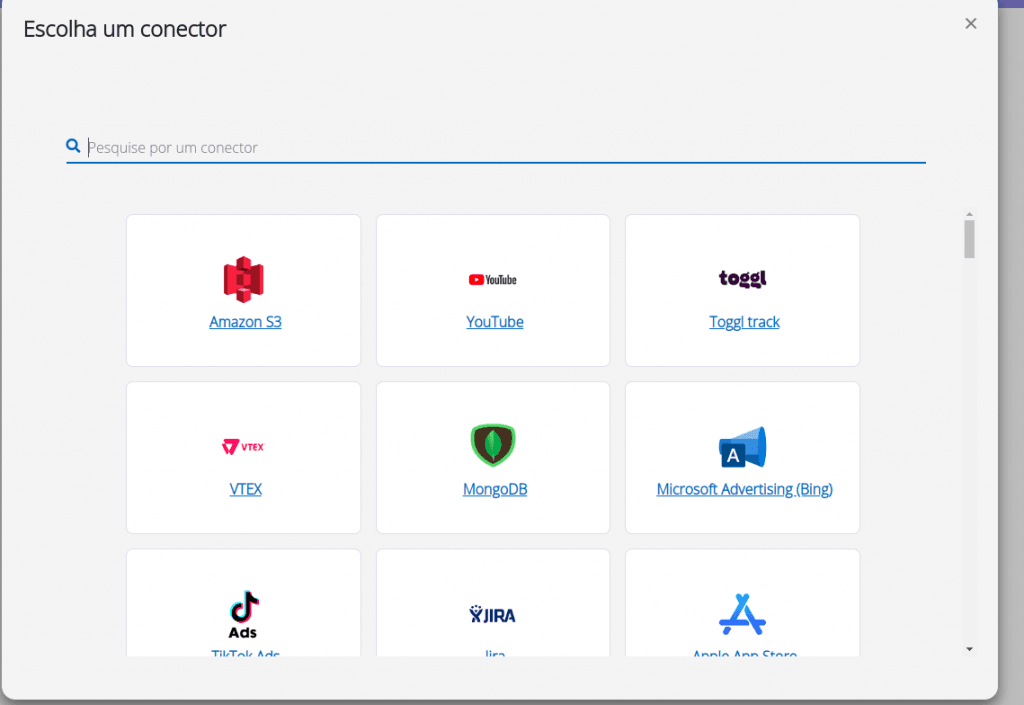 - Na plataforma da Kondado, selecione seu conector e siga as instruções para adicioná-lo.