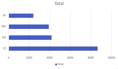 Você pode apresentar essas informações com um gráfico clicando em “Inserir”, depois no ícone do gráfico de sua escolha. No exemplo abaixo, foi usado o gráfico de barras em sua variação “Barras Empilhadas”.