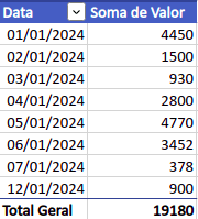 Por último, a terceira pergunta será respondida de forma que o campo “Datas” esteja na área “Linhas” e o campo “Valor” em “Valores”, obtendo então o gráfico abaixo.