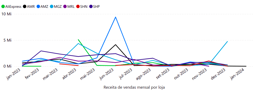5. Gráfico Receita de Produtos Mensal por Loja (R$)