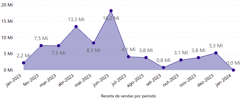 Possui uma representação visual da receita por loja de forma mensal, facilitando na análise de desempenho.
