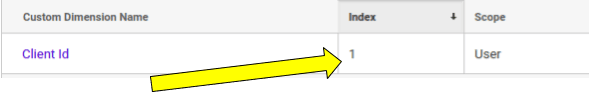 5) Depois de criada, anote o número do index da dimensão. Iremos usá-lo daqui a pouco