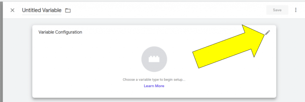 8) No menu que irá abrir, selecione o lápis que estará na borda superior direita do retângulo brando de configuração da variável