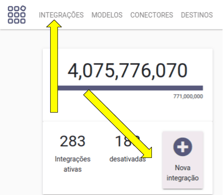 2) Navegue até o menu de integrações e clique em "Nova Integração"