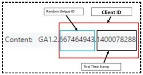 O Client ID é criada e atrelada através do cookie de um cookie chamado _ga, que é composto de 4 campos: