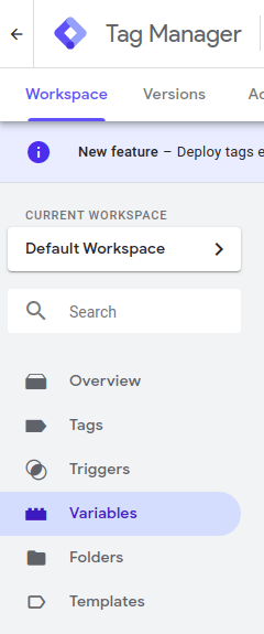 6) Acesse o seu Google Tag Manager e no menu à esquerda, selecione "Variables"