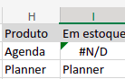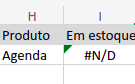 Como o produto não está no estoque, o retorno da função é #N/D.