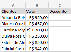 Arrastando para baixo, temos os descontos de todos os clientes.