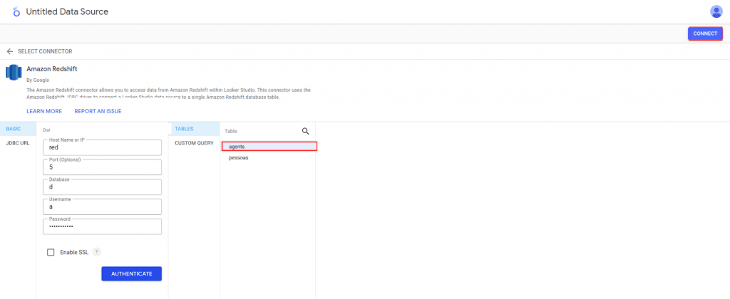 - Pronto! Seu banco de dados Redshift agora está vinculado ao Looker Studio, oferecendo acesso a dados em tempo real, produção de análises avançadas e a capacidade de personalizar relatórios para atender às suas necessidades.