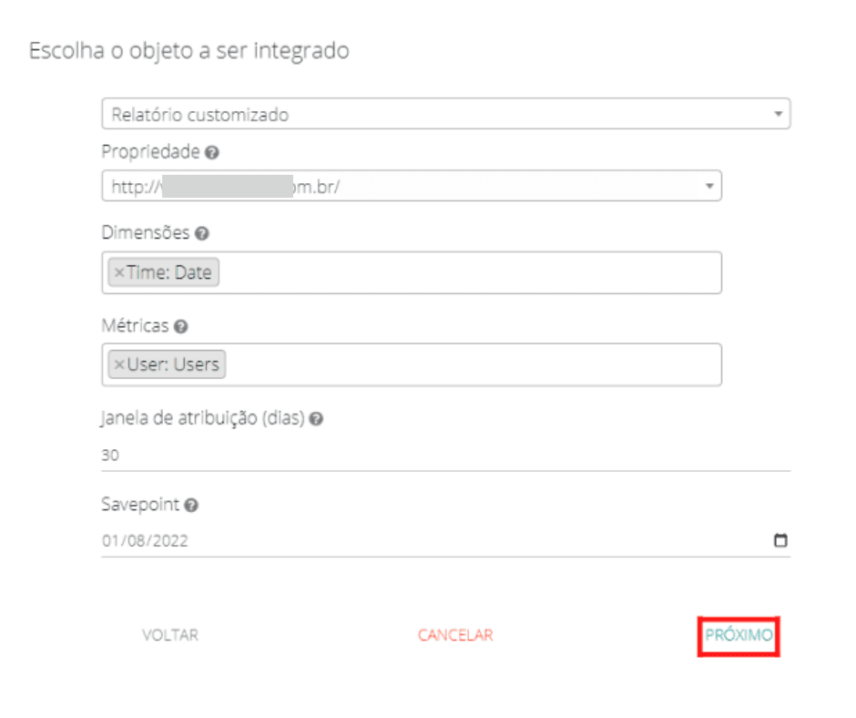 - Personalize as opções do objeto que deve ser integrado. Separamos alguns links com explicações sobre os conceitos para facilitar a compreensão: