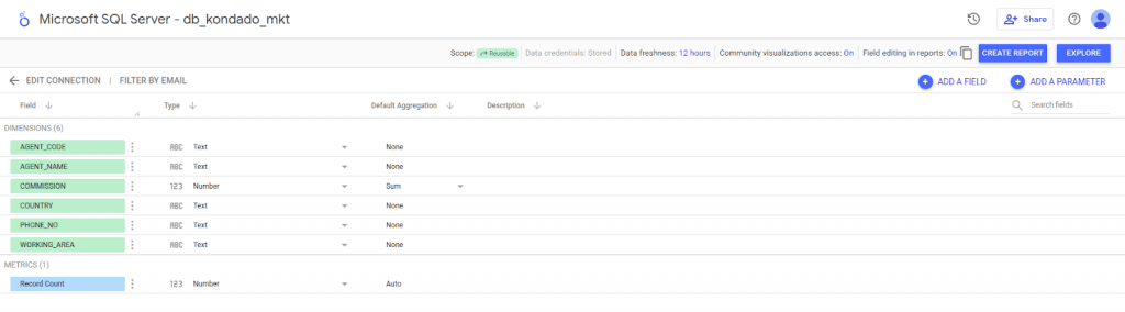 - Após a conexão ser estabelecida com sucesso, você poderá começar a criar visualizações e relatórios a partir dos dados do SQL Server no Looker Studio.