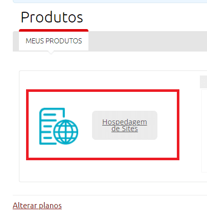 - Na página inicial da central, em "Meus Produtos" selecione "Hospedagem de Sites":