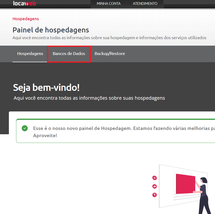 3. No painel de hospedagens clique em "Bancos de Dados":