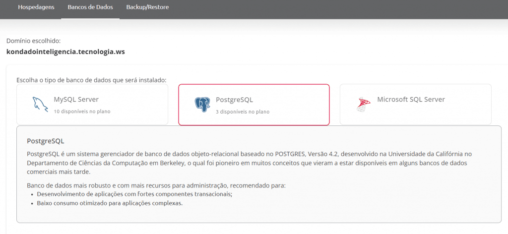 Passo a passo de como criar um banco PostgreSQL hospedado na Locaweb