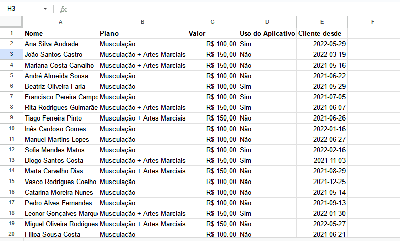 Agora, vamos realizar um simples exercício de análise de dados. Como o combo Musculação + Artes Marciais tem um custo mais elevado, podemos esperar que haja menos alunos escolhendo esse combo.
