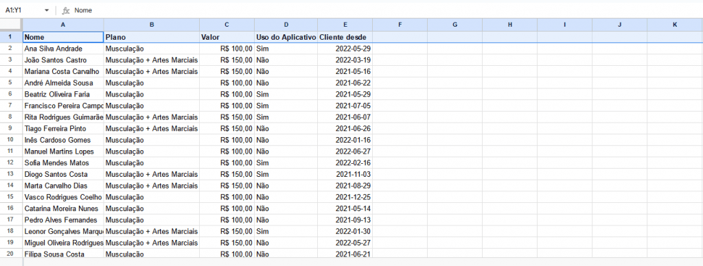 Podemos ir em "Linhas" e selecionar "Nome" em vez de "Plano", para saber quais alunos utilizam o aplicativo por nome.