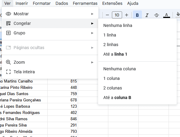Congelar linhas no Google Sheets é uma dica muito útil, principalmente para planilhas com muitas linhas, facilitando o entendimento.