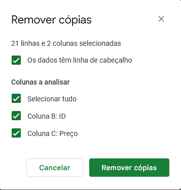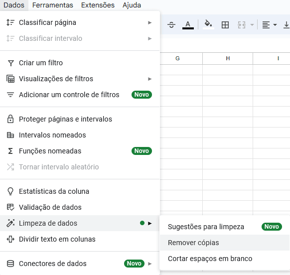 Além de remover cópias, o próprio Google Sheets oferece sugestões de limpeza que ajudam a deixar sua planilha mais clara.