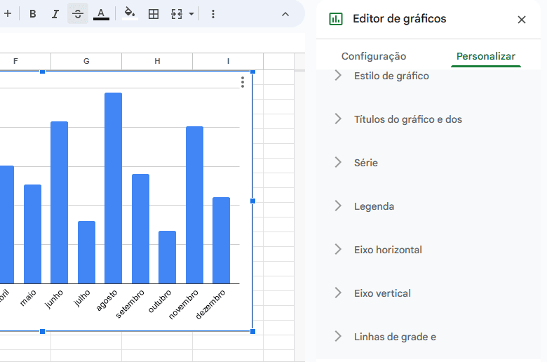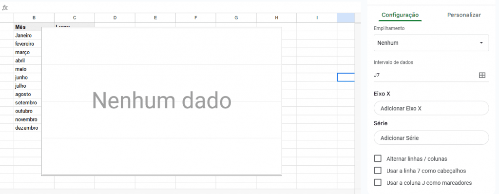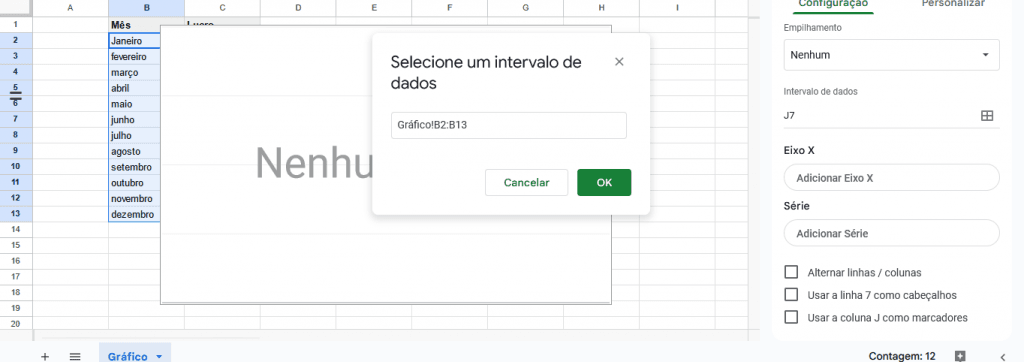 No editor de gráficos, selecione seu Eixo X, que em nosso exemplo são os meses do ano.