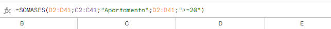 =SUMIF ou SOMASES(intervalo_soma1; critérios1; [intervalo_soma2; critérios2;...])