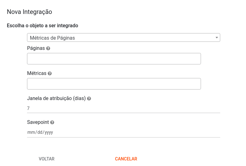 Uma vez criada a integração, ela irá fazer uma carga histórica (a partir do savepoint definido) e depois apenas ler dados novos (e atualizados conforme a janela de atribuição). Abaixo, você encontra uma descrição mais a fundo das métricas e o seu comportamento.