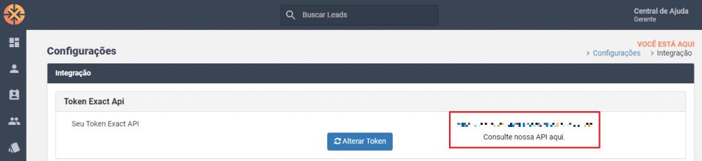 3. Na página de configurações vá em Token Exact Api e copie o valor exibido