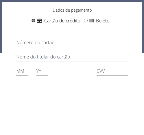 - Caso o método de pagamento seja cartão de crédito, basta preencher as informações do cartão que será usado para os pagamentos mensais: