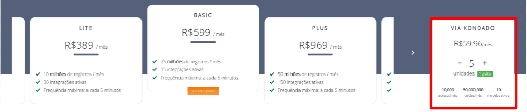 - Se estiver utilizando os serviços de teste grátis da Kondado e optar por contratar algum plano pago, adequaremos suas integrações e frequências de acordo com o plano que escolher: