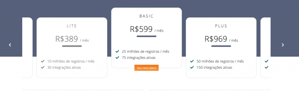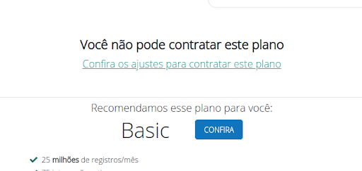 - Escolher o plano desejado entre as opções (para saber mais sobre os nossos planos e limites acesse nossa página de Planos e Limites):