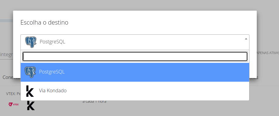 Clique aqui para voltar à página inicial da documentação. Na barra de busca, digite o tipo do seu conector ou do seu destino para encontrar o respectivo tutorial de como cadastrá-los.