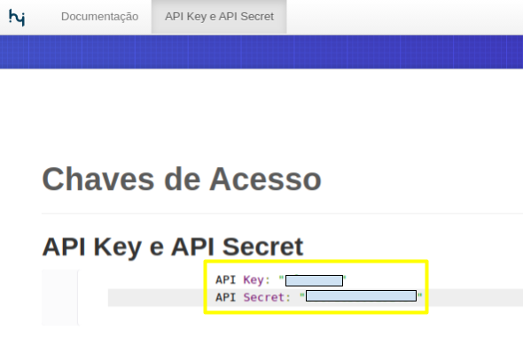 4) Agora basta copiar os valores de “API Key” e “API Secret” que irão aparecer – sem as aspas