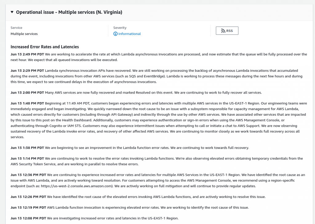 6. Atualização 20:00 BRT: reestabelecemos plenamente o serviço de salvamento de dados de acesso. Continuamos monitorando a execução das integrações mencionadas no item 5.1, que estão sendo desabilitadas conforme esgotam o número de retentativas