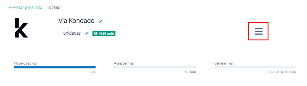 O Via Kondado possui 3 limites mensais: Acessos, células armazenadas e modelos ativos. Esses limites funcionam com base nas unidades adquiridas, sendo que todos os planos contemplam uma unidade gratuita.
