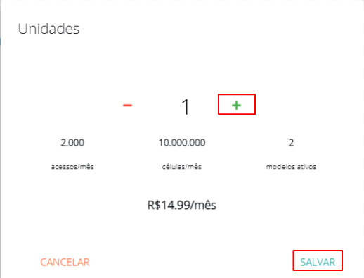 4. Adicione a quantidade de unidades desejada e clique em salvar