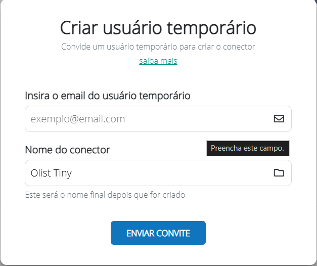 Quando você envia um convite, o destinatário recebe um link no email onde ele é encaminhado para uma página de configuração semelhante a página padrão da plataforma. No entanto, esse acesso é restrito exclusivamente à configuração do conector ou destino.
