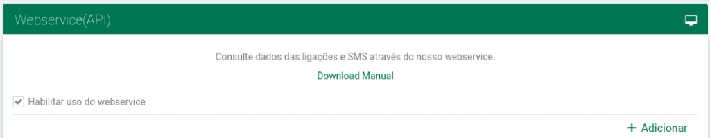 2) Na nova página, marque a opção "Habilitar uso do webservice" e clique em "Adicionar" à direita