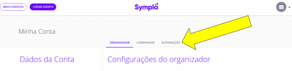 3) Na página página de minha conta, você deverá clicar "INTEGRAÇÕES" em na lista que aparece no meio da tela
