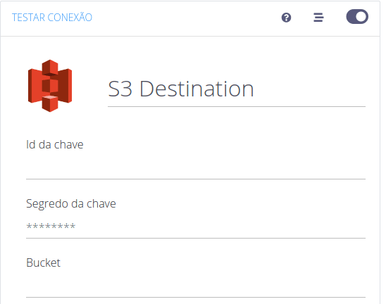 De posse da access key e do bucket, você já pode preencher as primeiras informações de criação do destino