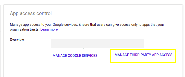 3) Na página de App access control, selecione MANAGE THIRD-PARTY APP ACCESS