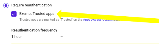 Caso a sua empresa tenha implementado uma política de reautenticação para apps na sua conta do google, será necessário que um administrador da conta google libere a Kondado desta política configurando nosso aplicativo do google como confiável seguindo os passos abaixo (afinal, as integrações precisarão executar de forma autônoma sem uma reautenticação a cada 24h)